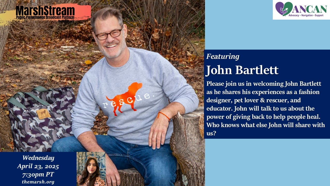 Please join us in welcoming John Bartlett as he shares his experiences as a fashion designer, pet lover & rescuer, and educator. John will talk to us about the power of giving back to help people heal.